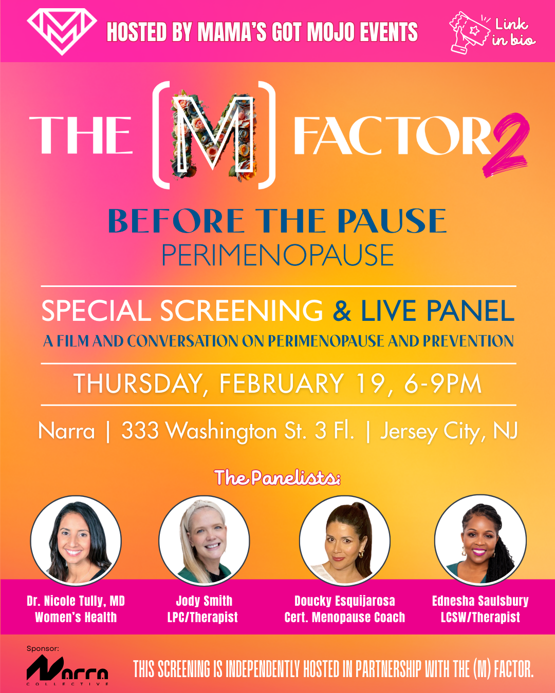 Join us for a powerful screening of The M Factor 2: Before the Pause — Perimenopause, followed by a live expert panel discussion. This eye-opening event is for women who want to be prepared, women who are already experiencing changes, and the partners who want to learn how to better support them.
